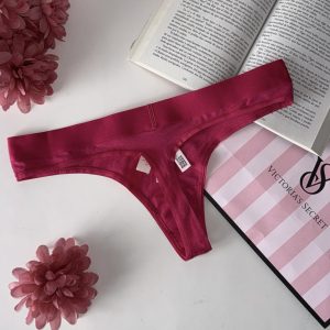 Tanga femenina en tono rosa intenso con acabado satinado que aporta un brillo elegante y sofisticado. Su diseño minimalista y moderno se ajusta suavemente al cuerpo, brindando comodidad y una silueta favorecedora sin marcar bajo la ropa. La pretina elástica incluye el icónico detalle de Victoria’s Secret con aplicación brillante que añade un toque delicado y exclusivo.